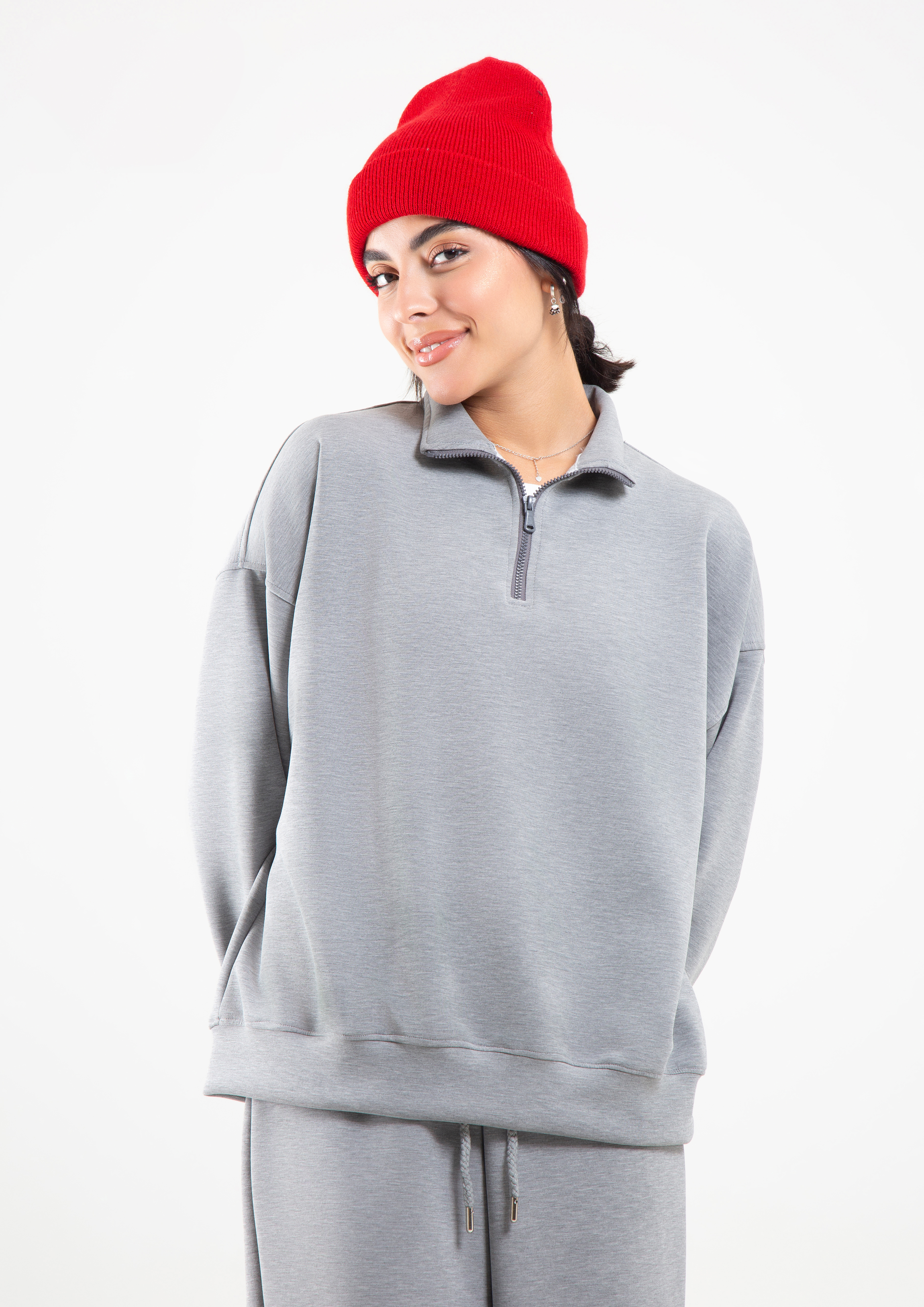 رنگبندی زرشکی، مشکی، طوسی و کرم دست شما را برای ساخت استایلهای مینیمال، مونوکروم یا گرم و پاییزی باز میگذارد. سایزبندی F (فریسایز) با فرم آزاد، برای اغلب اندامها مناسب بوده و حس راحتی بالایی هنگام پوشیدن ایجاد میکند.