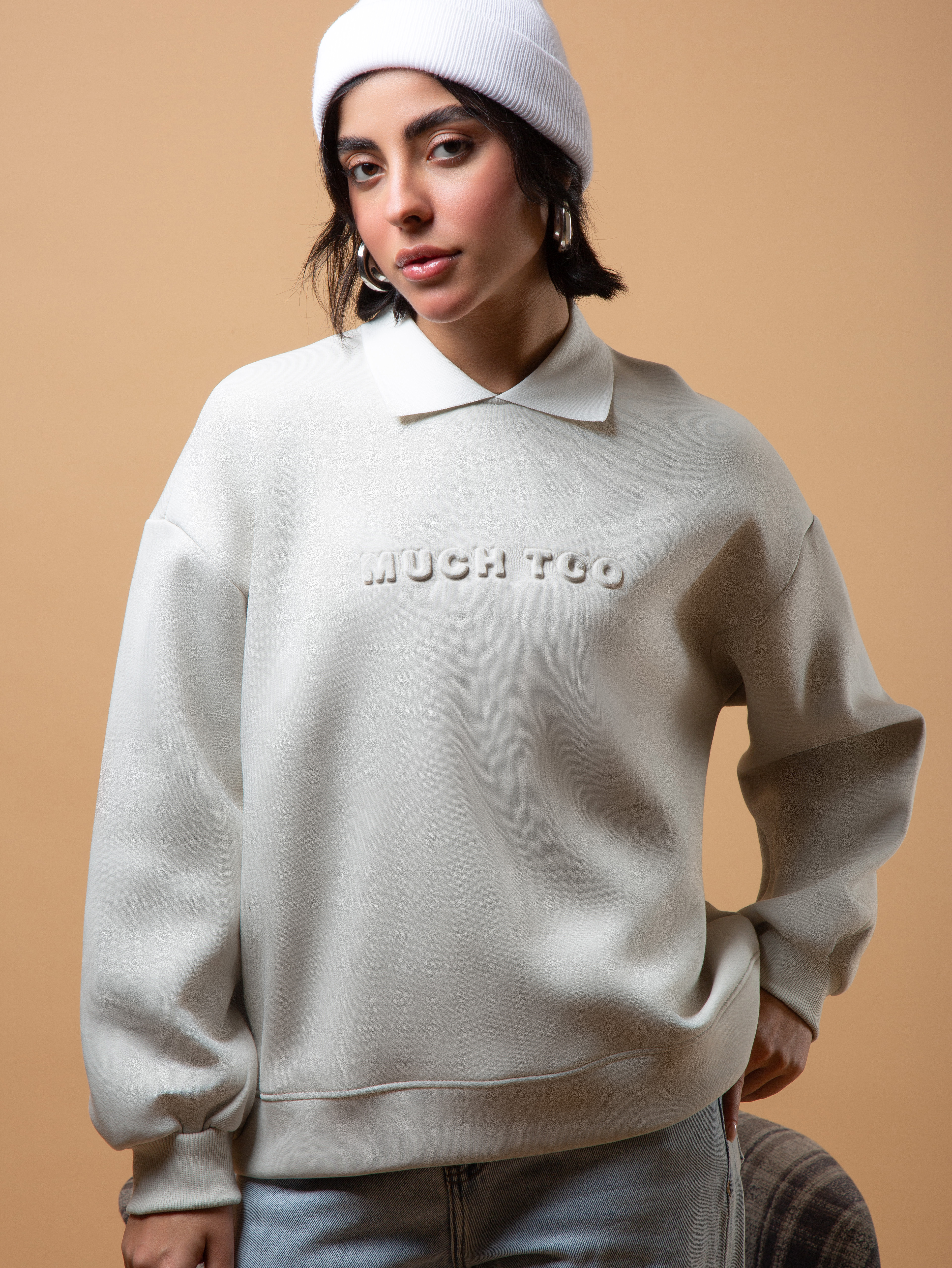 بلوز یقه دار زنانه کد: 715138، اگرچه از طراحیای مینیمال برخوردار است اما با اضافه شدن یقه و نوشته برجسته MUCH TOO از سادگی درآمده است.