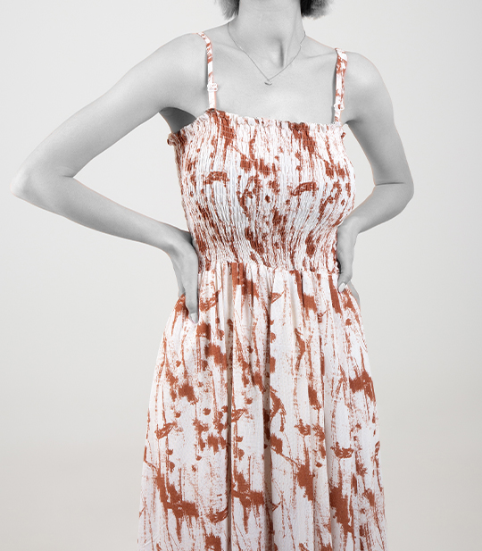 پیراهن زنانه کد: 905072، پیراهنی زنانه با طراحی شیک است. بالاتنه این پیراهن، به صورت کامل کش دو.زی شده است که فرمی زیبا به اندام شما میبخشد. آزادی قسمت پایین لباس، امکان حرکت راحت و استایلی مدرن را ایجاد میکند.