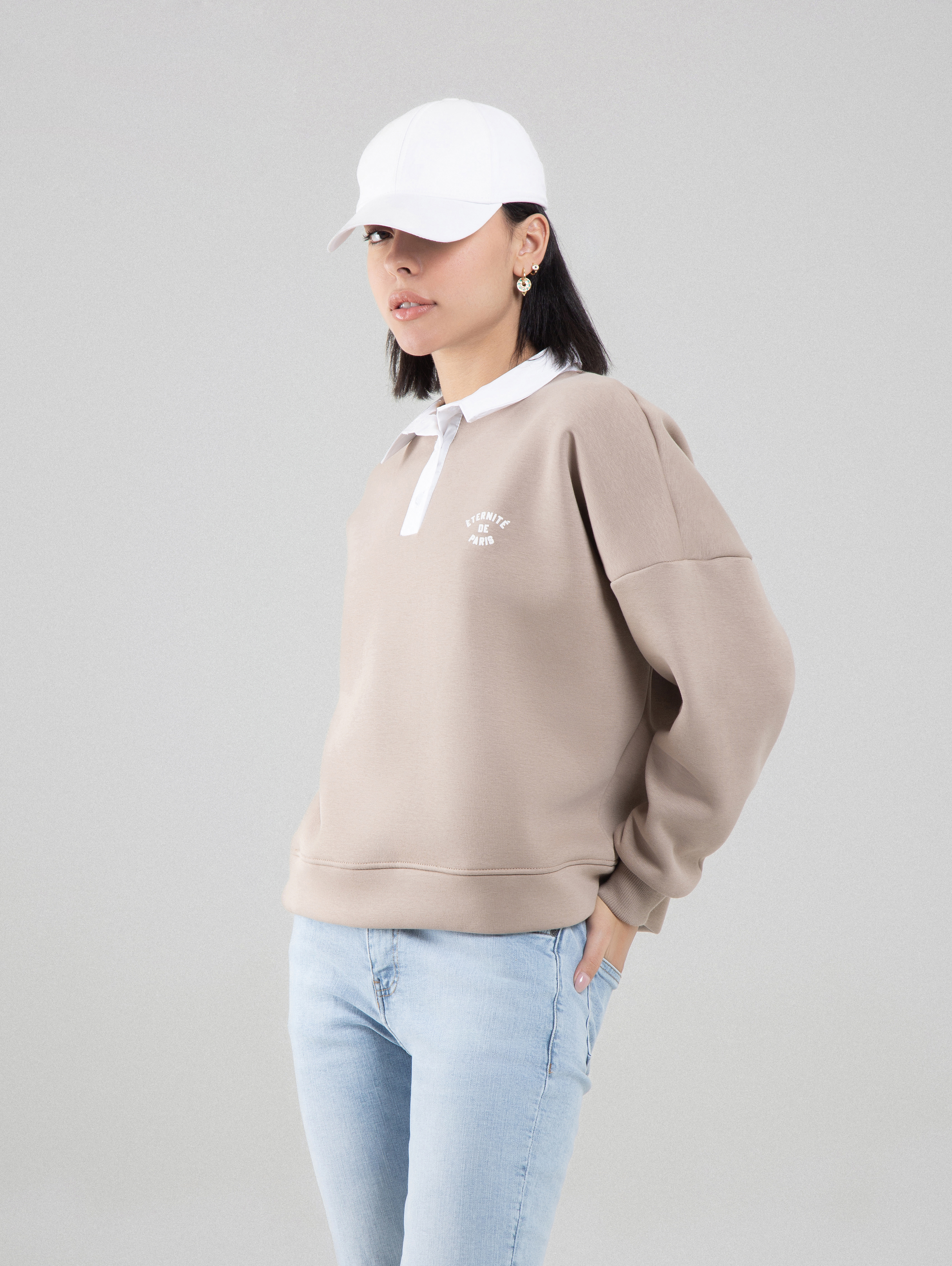 طراحی این مدل با یقه کلاسیک و طرح چاپی روی قسمت سینه، جلوهای مدرن و در عین حال مینیمال به لباس میبخشد.