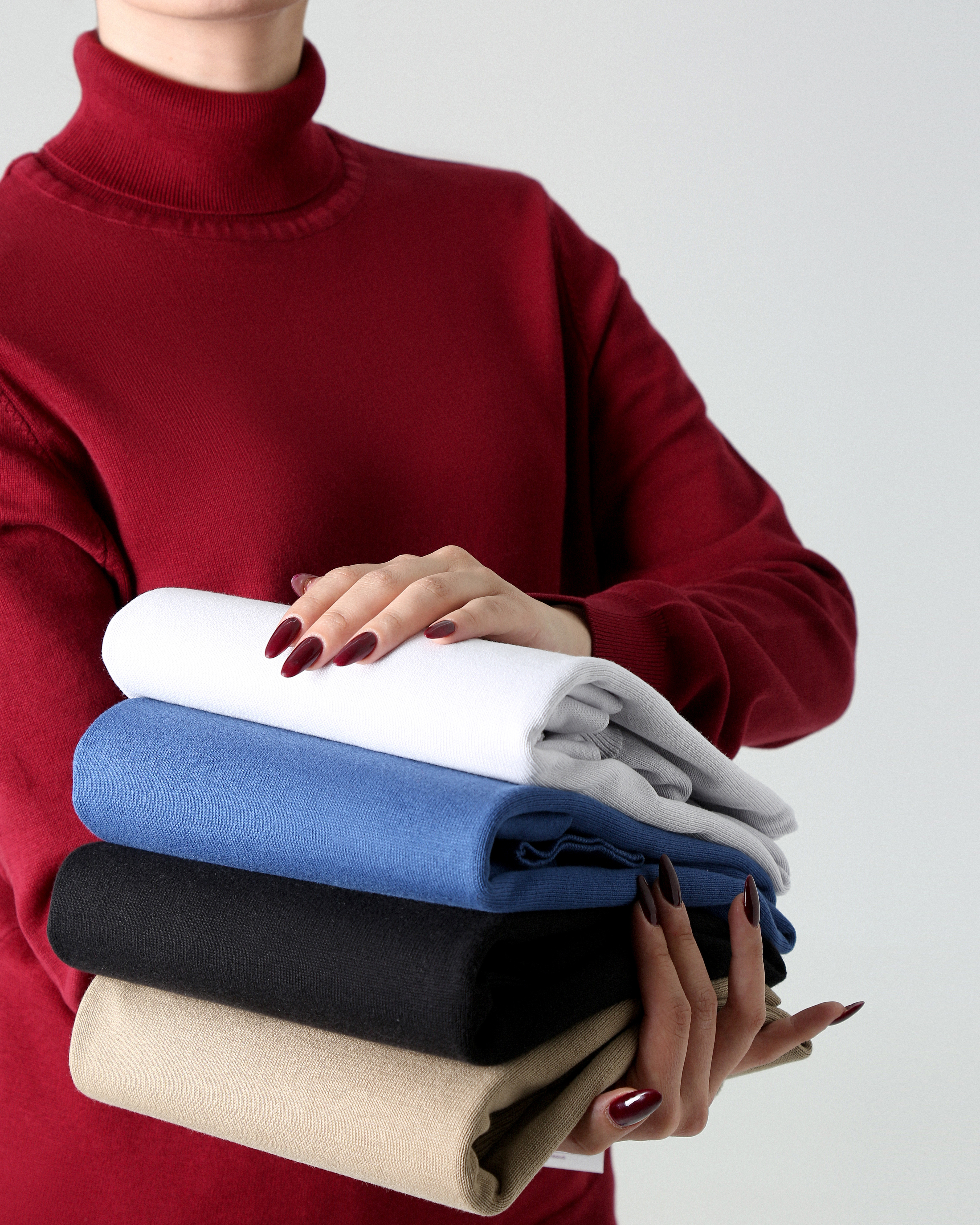 6. نگهداری تا شده در کمد (نه آویزان) برای حفظ فرم بافت.