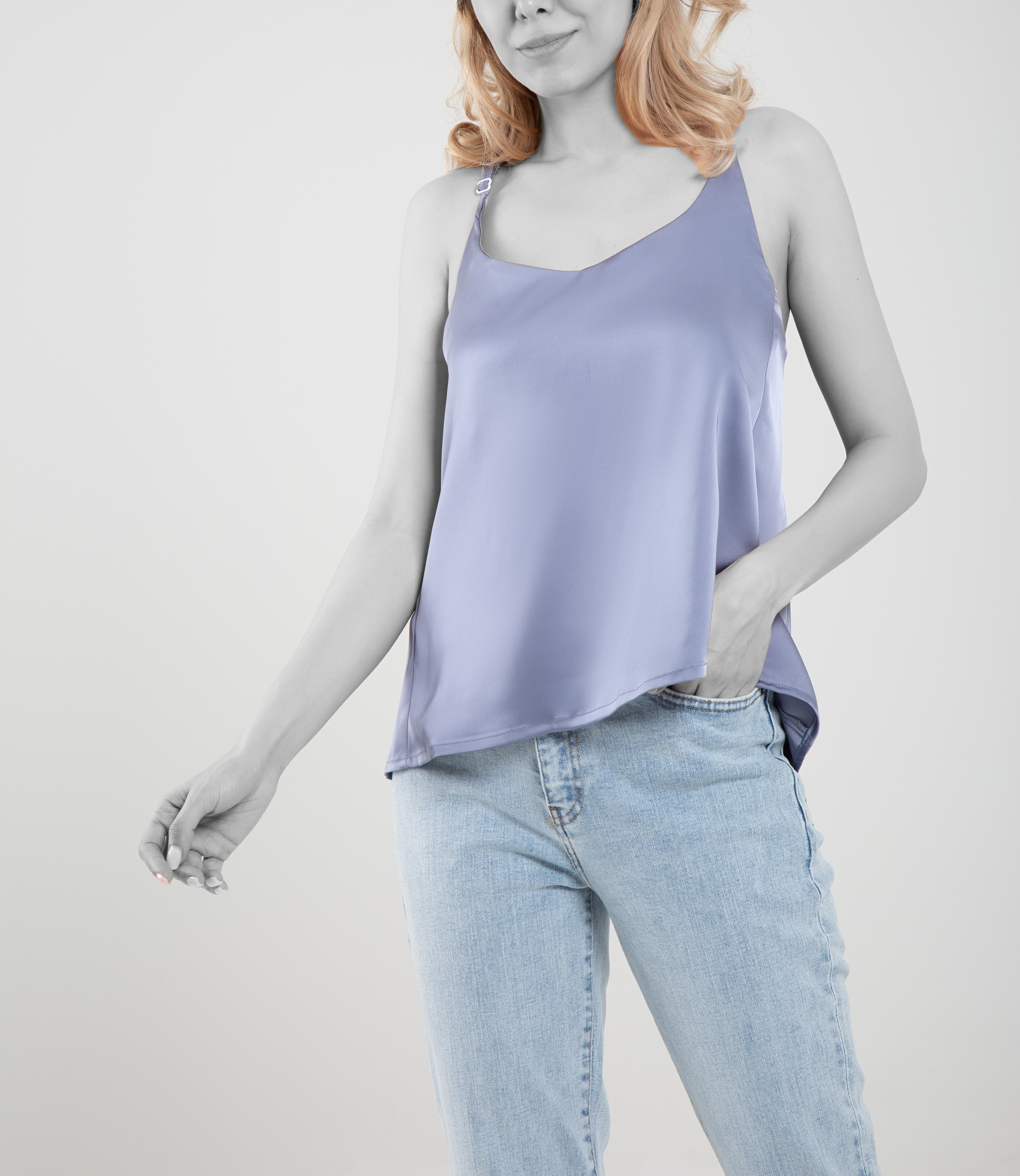 جنس ساتن این تاپ جلوهای براق و لوکس به استایل میدهد و بندهای ظریف آن ظرافت و زیبایی بیشتری به پوشش شما اضافه میکنند.