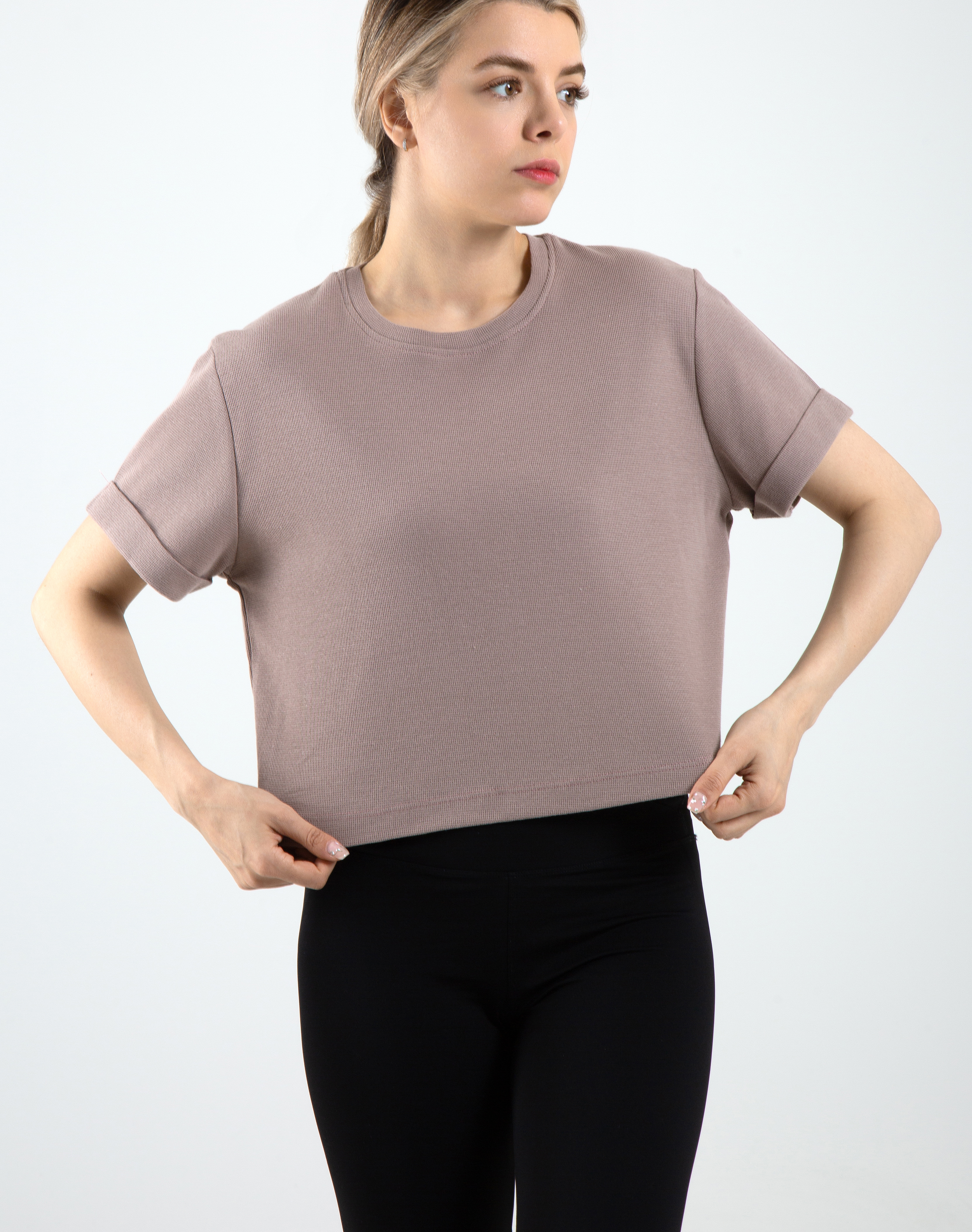 تیشرت کراپ زنانه کد: 712109، با یقه گرد و طراحی ساده و مینیمال، جلوه‌ای مدرن و جذاب به استایل روزمره می‌بخشد.