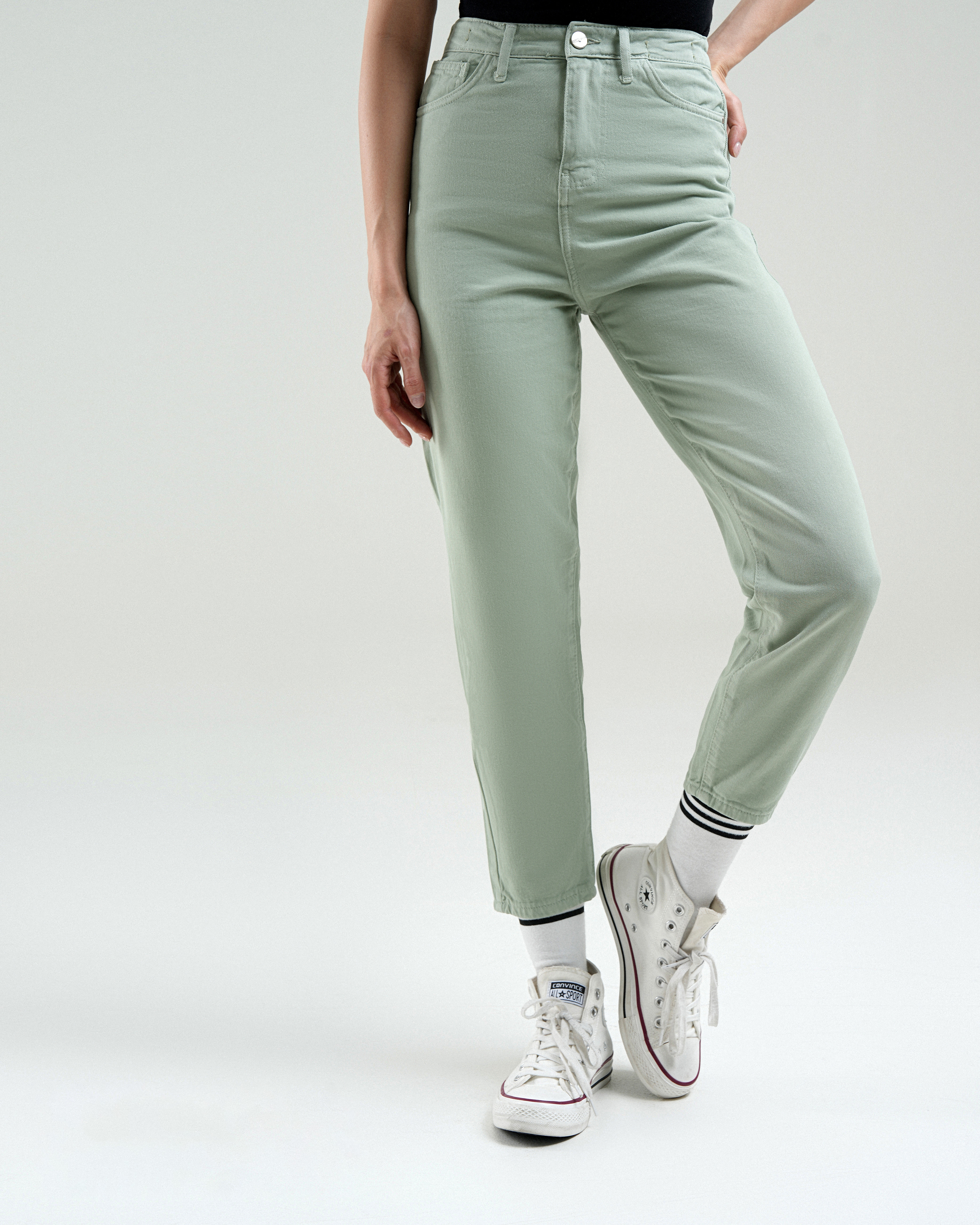 شلوار کتان زنانه کد 316160 با طراحی مام فیت و رنگ سبز پسته‌ای، انتخابی شیک و راحت برای استایل روزمره است.