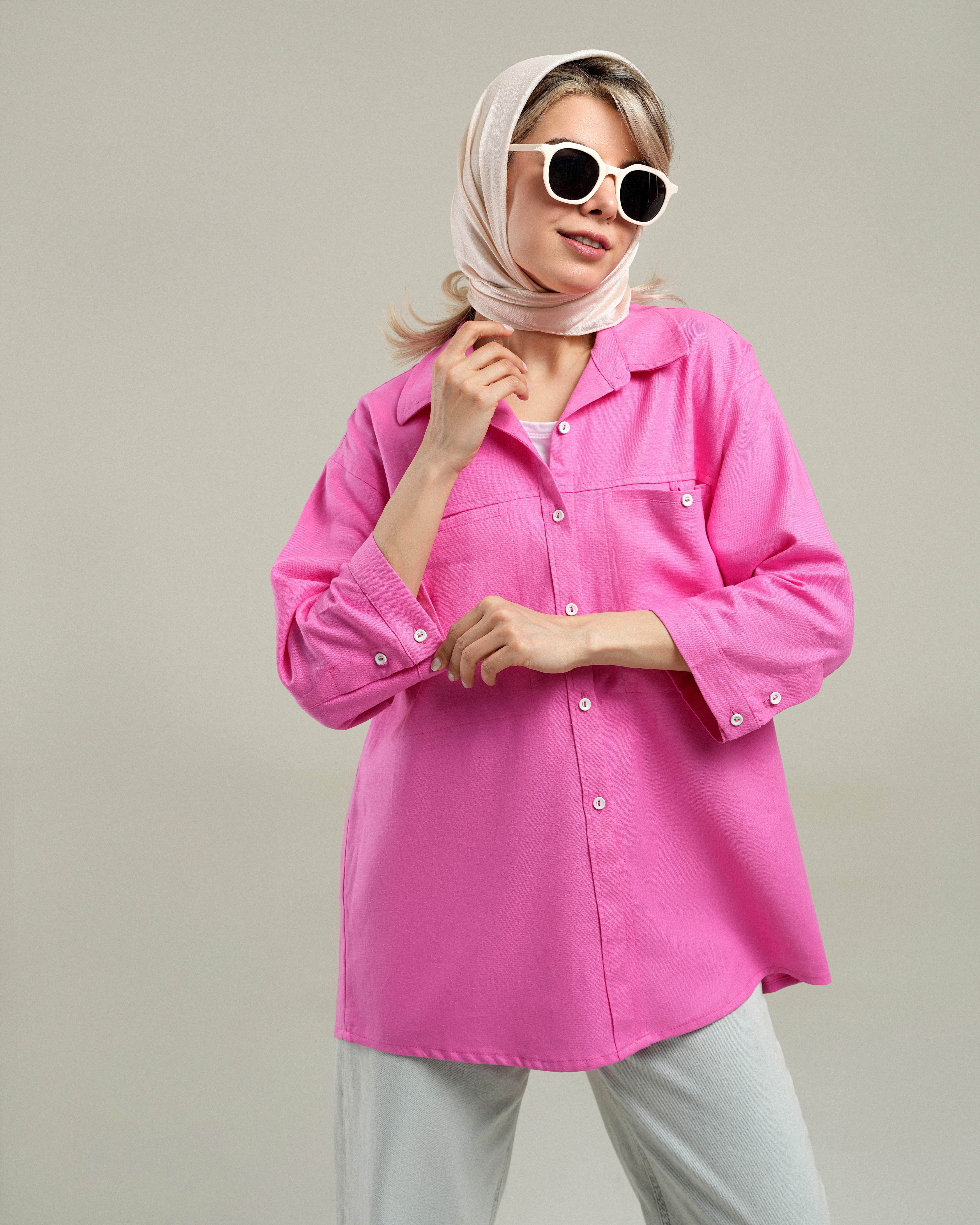 شومیز مانتویی زنانه کد: 501427، با جنس لینن، ترکیبی از راحتی و سبک بودن را برای فصلهای بهار و تابستان ارائه میدهد.