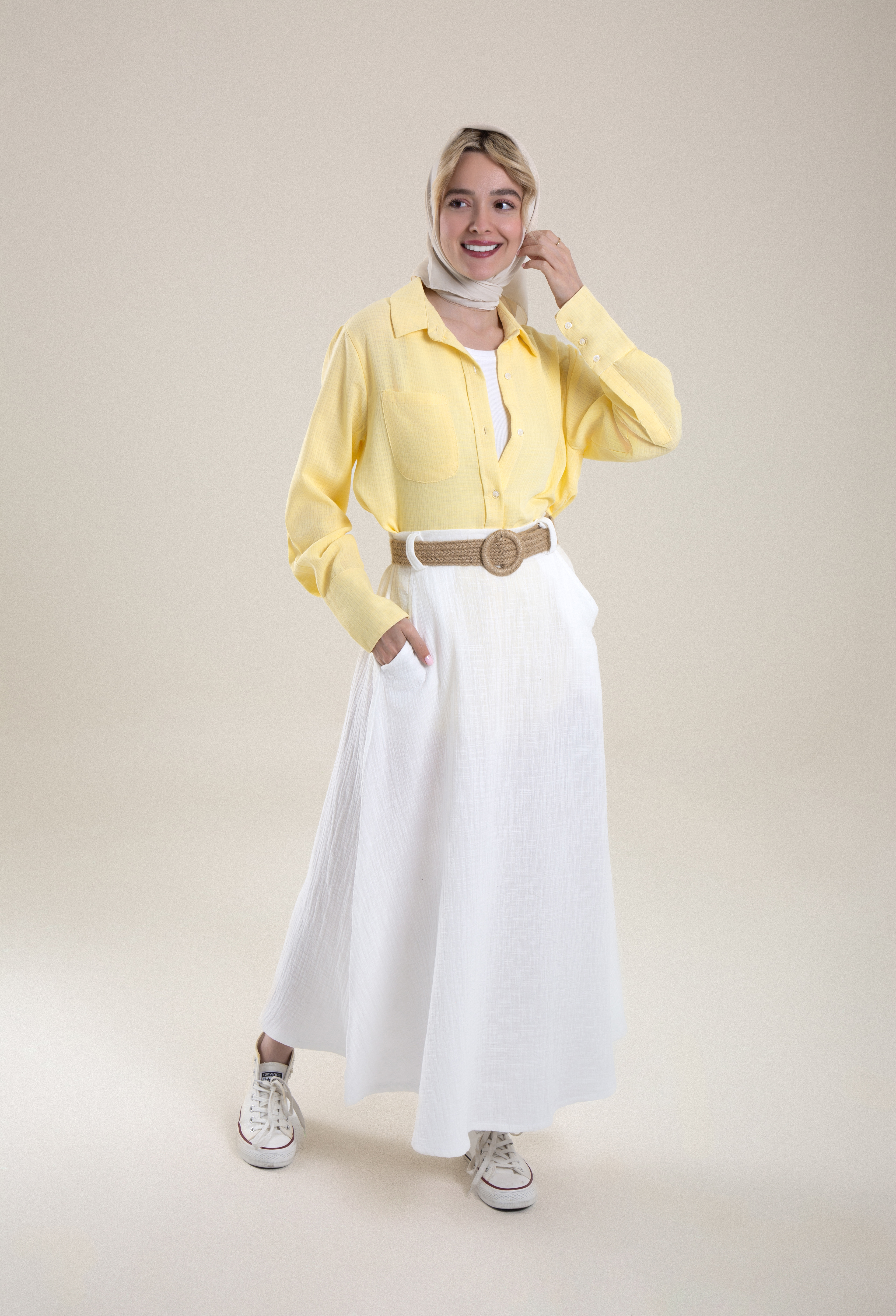 شومیز زنانه کد:501451، این شومیز زنانه با طراحی کلاسیک و یقه مردانه، گزینه‌ای شیک و همیشه‌به‌روز برای استایل‌های روزمره و نیمه‌رسمی است.