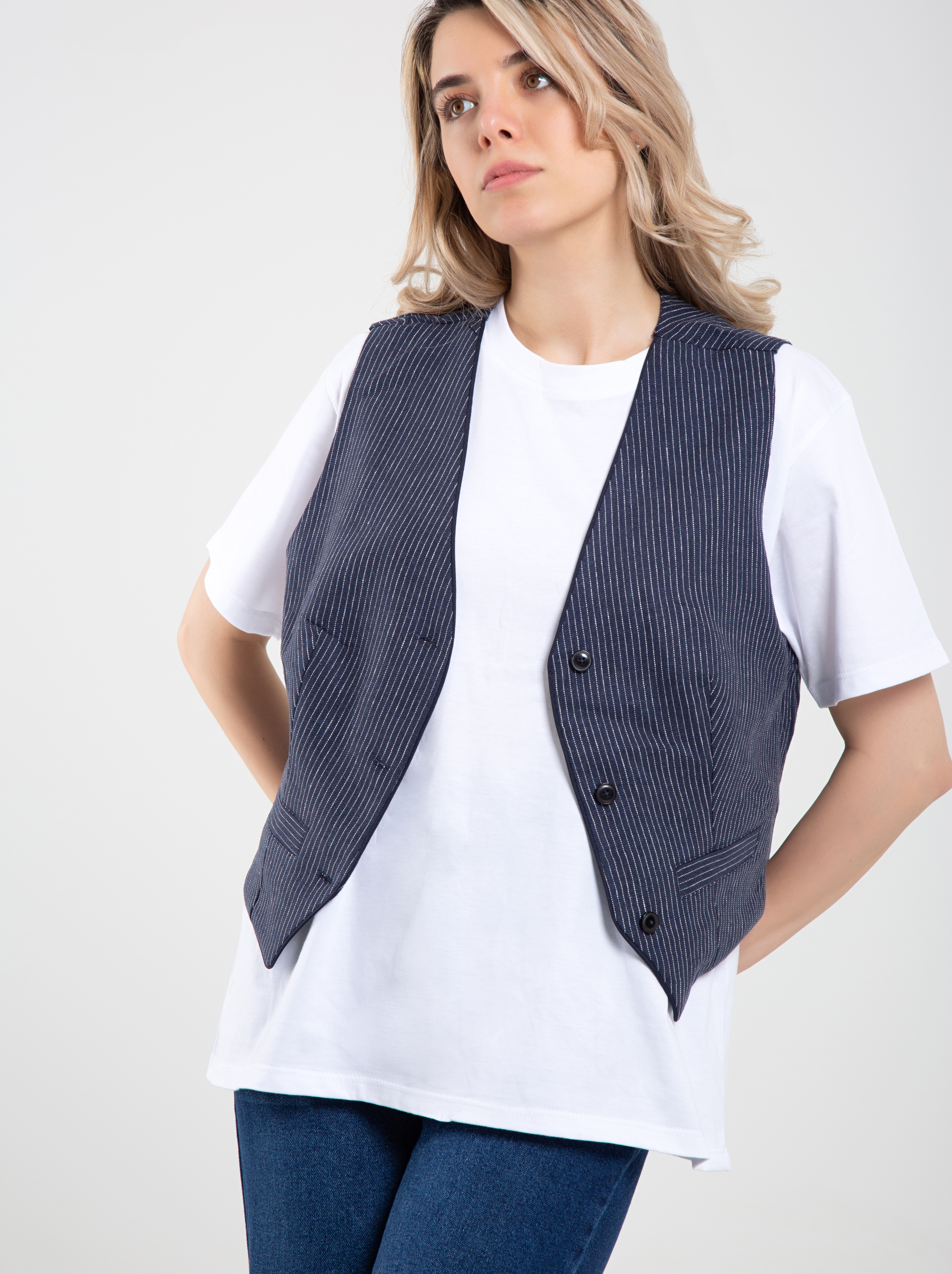 این وست تکرنگ سرمهای، گزینهای شیک و همهکاره برای استایلهای رسمی و نیمهرسمی است و بهراحتی میتوان آن را روی پیراهن یا شومیز پوشید.